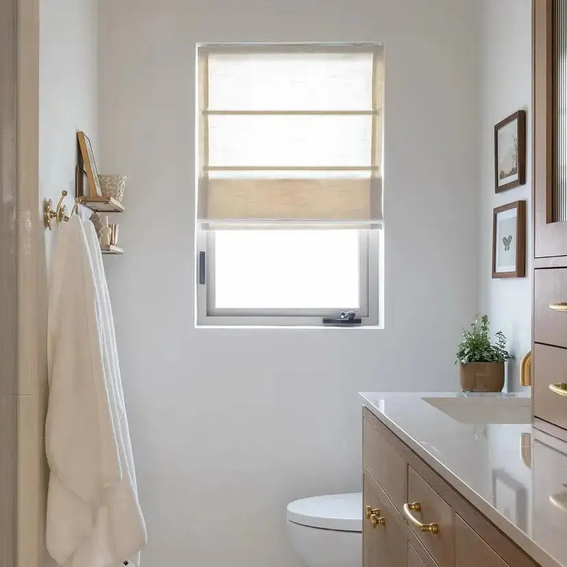 The Custom Top Down Bottom Up Roman Shade Cordless offers flexible light management with its innovative design. The top-down bottom-up mechanism allows light to enter from the top while maintaining privacy at the bottom or fully raising the shade for complete openness. Cordless operation adds safety and a modern aesthetic, ideal for living spaces, bedrooms, or offices.
