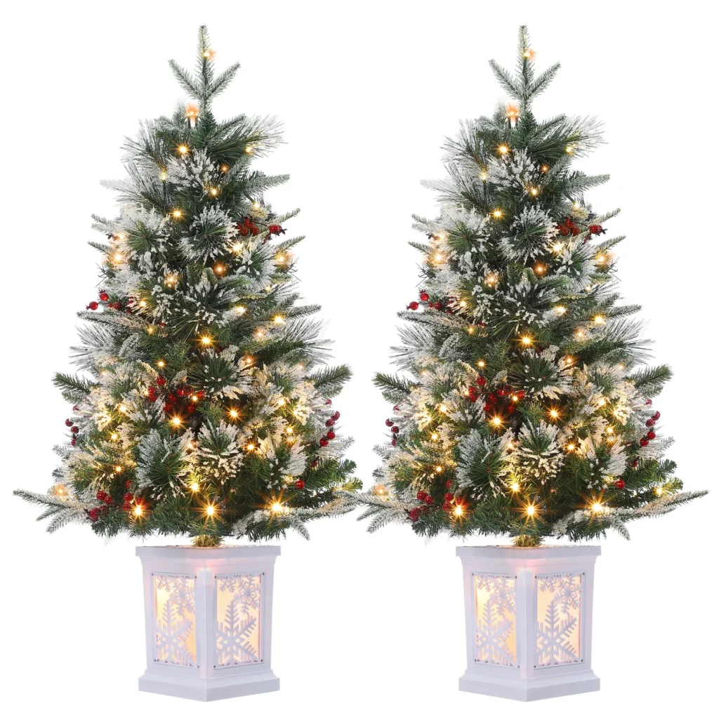 The two-tree set is perfect for paired displays in living rooms, entryways, or office spaces. Its compact size allows easy integration into various decor themes while maintaining a sophisticated holiday feel. Durable materials and pre-installed lights ensure lasting use, making it a practical and visually appealing choice for any holiday setup. These trees combine style, functionality, and festive charm in a compact, easy-to-manage format, ideal for multiple settings.