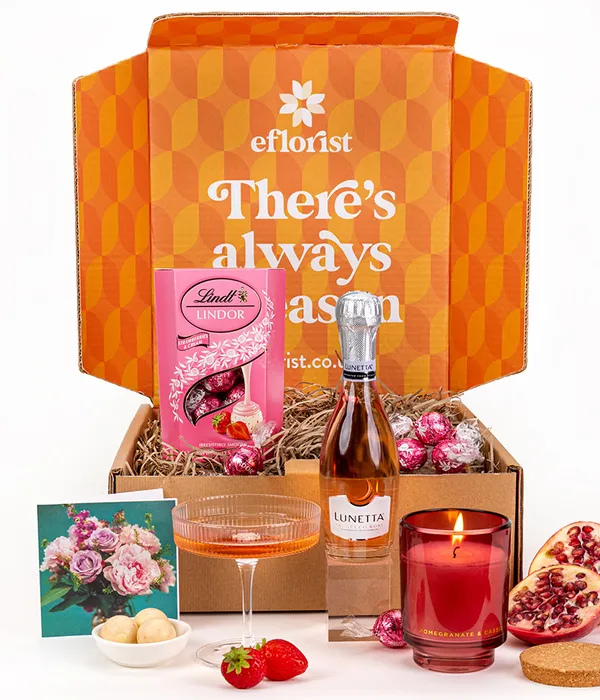 For those who want to celebrate in style, the Rosé Prosecco Gift Set is perfect for those who want to indulge in the finer things. This set incorporates Freixenet Italian Rosé Sparkling Wine to give a classy look to the occasion. Accompanying the drink is a range of Lindt Strawberries and Cream Chocolate Truffles to complete the sweetness. The Pomegranate & Cassis candle takes it to the next level and so this is a perfect pampering session.