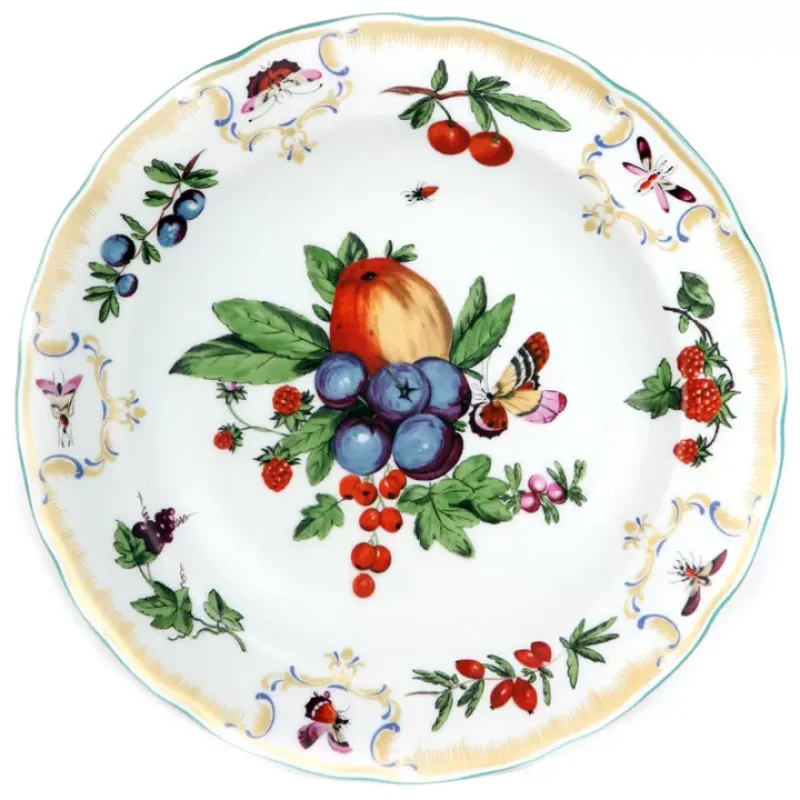 Duke of Gloucester Dinnerware is a masterpiece of historical elegance, with bright colors and a lot of details. The design by Mottahedeh is based on the motifs of Rococo and colorful fruits, as well as imaginative insects and supplemented by the rim of enamel in 22K gold with 22K gold flecking. This dinnerware is a fusion of museum quality artistry with practical luxury which was originally influenced by the works commissioned by William Henry, Duke of Gloucester in the 1770s. Every one of the pieces of the collection is hand-painted, which makes it extremely detailed and authentic. The five-course settings such as dinner, salad, bread and butter and tea cup with saucer offer a complete and high end solution towards formal dining events.