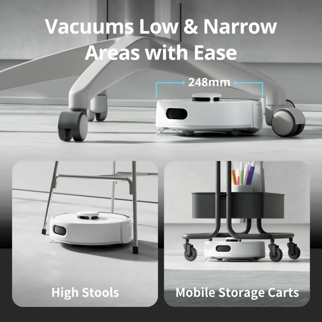 SwitchBot K11+ has a compact size smaller than an A4 piece of paper but has sufficient power to pick pet hair and dirt deep inside the carpets. This unit has a self-emptying station with a 4L antibacterial dust bag that can hold up to 90 days of debris, thus making it the ideal-low-maintenance option to the busy households.
