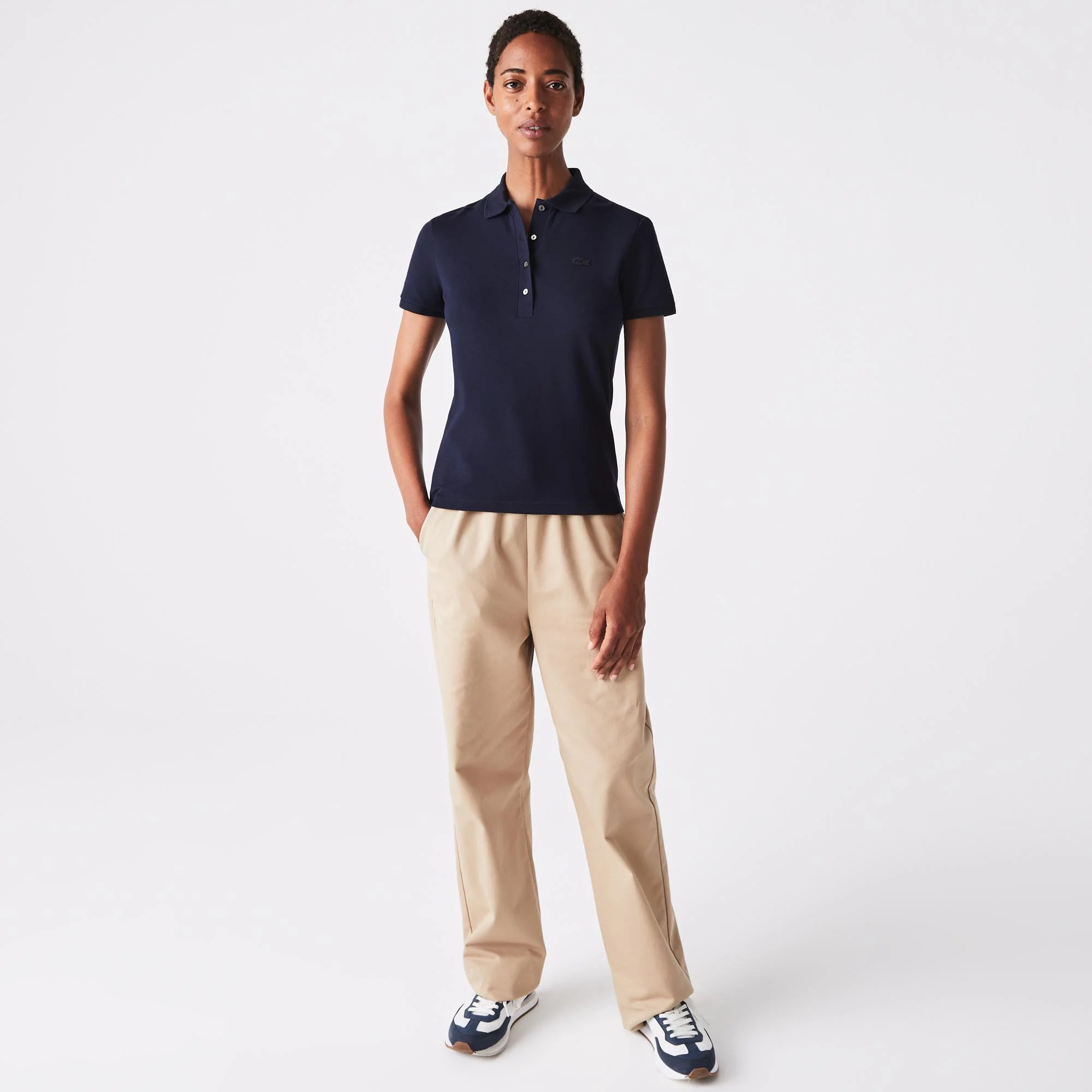 GRANATOWA DAMSKA KOSZULKA POLO O WĄSKIM KROJU OD LACOSTE