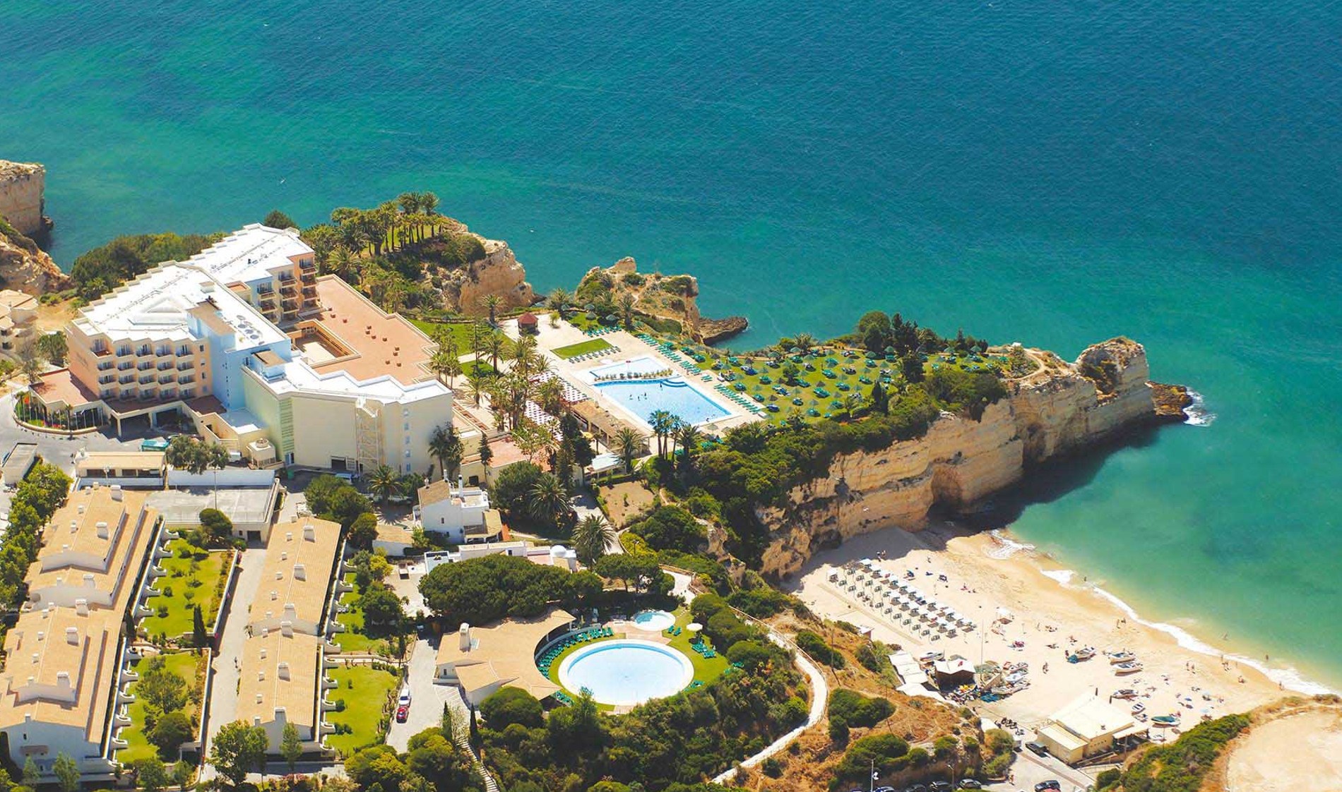 Situated atop cliffs in Porches-Armação de Pêra, the Pestana Viking is a sought-after 4-star hotel in the vibrant Algarve, just a 2-minute walk from Senhora da Rocha beach. Embraced by lively local life throughout the year, the hotel is enveloped by expansive gardens on three sides, featuring palm trees and lush greenery leading to the nearby beach.