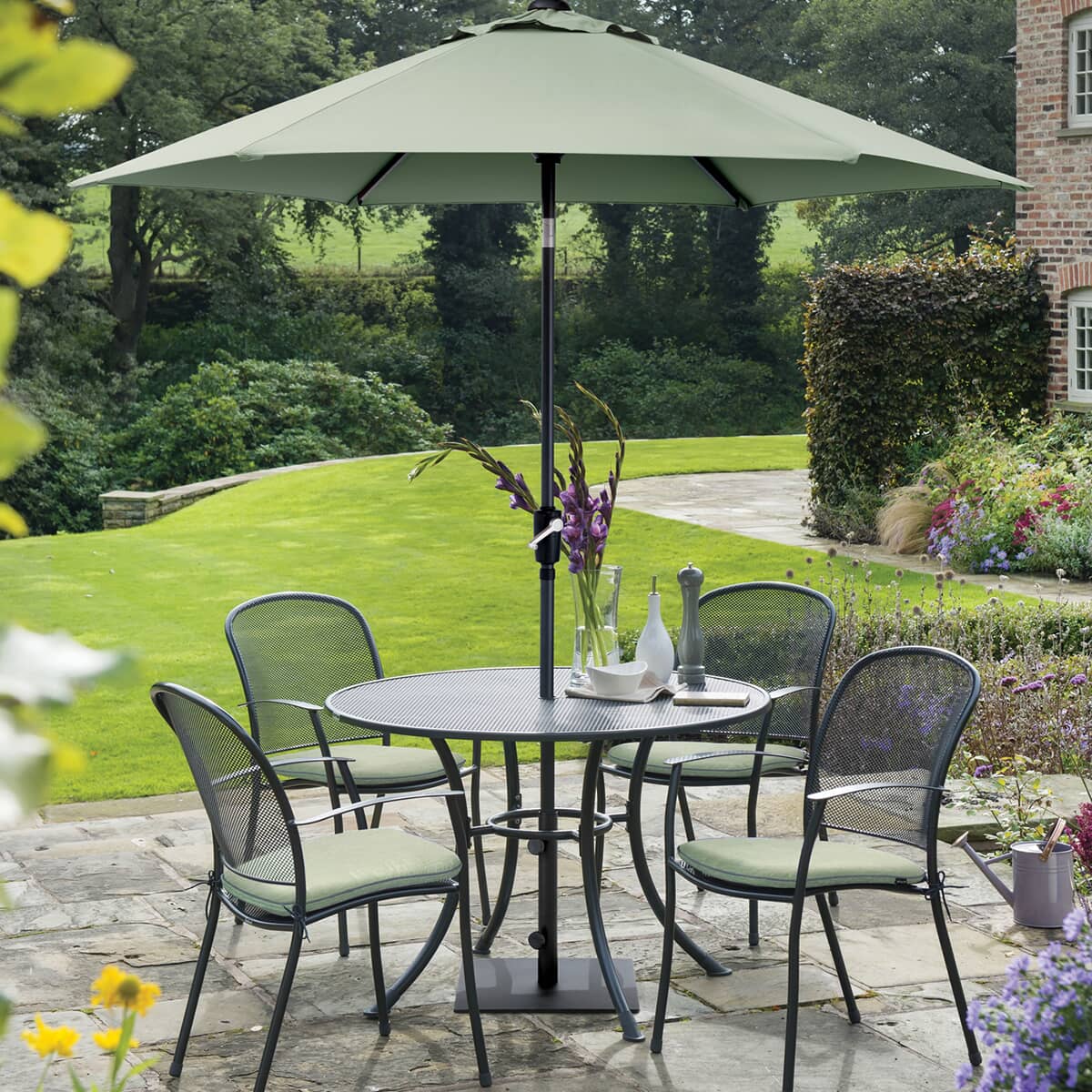 - Compact and stylish: Ideal for smaller gardens or patios with its sleek design and easy-to-store chairs.