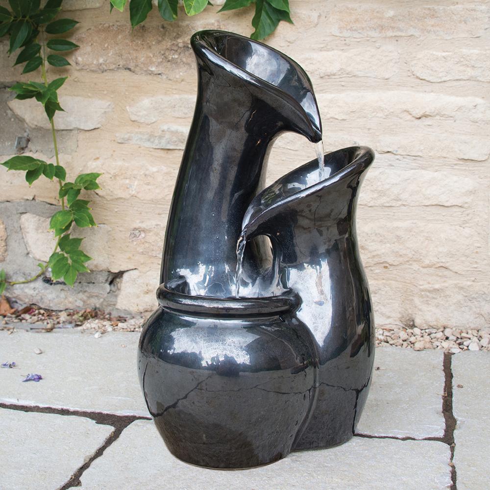 Glazed Pitcher Water feature with a more traditional jug look and feel with each jug coated in a glossy ceramic glaze. The reflective mirror finish makes it appealing and can be used in small corners of any outdoor setting.