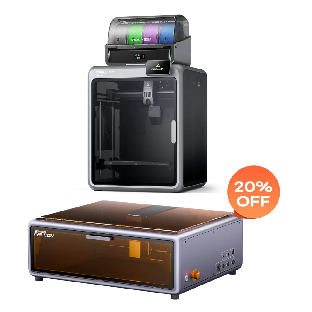 Falcon A1 +K2 Pro Combo is a powerful printing device providing users with reliability and high performance types. It will have a K1C+Hyper PLA-CF*2 clog-free extruder kit, which will make feeding of filaments clean and avoid blockages. The tri-metal quick- swap nozzle can easily be maintained and a balanced cooling system optimizes print quality and accuracy on each layer. Having a maximum printing speed of 600mm/s, and capable of supporting many different types of filaments such as PLA-CF, PA-CF, PET-CF, ABS and TPU, this combo will be of interest in more complex and large-scale projects. The provided Creality Cloud 1-Year Premium subscription provides access to more than 300 exclusive models and safe cloud storage.