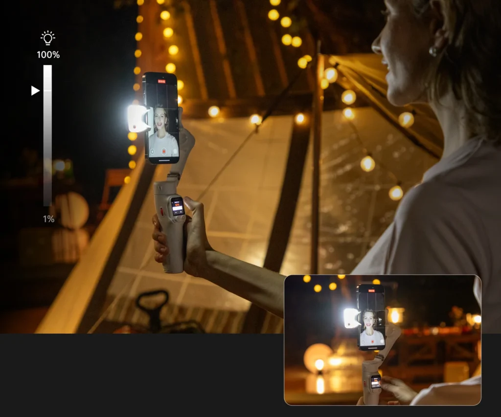 Lighting may make or break a shot, particularly in low-light scenarios. The Hohem iSteady V3 Ultra can smoothly and flicker-free control the brightness of the camera from 1% to 100%, which means that you can even control the lighting in real-time without breaking the shooting.