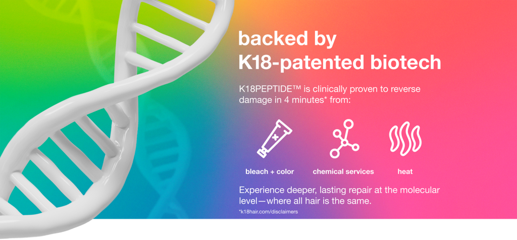 The biomimetic peptide used in the K18 Hair product mimics the structure of natural hair and helps reconnect damaged chains.