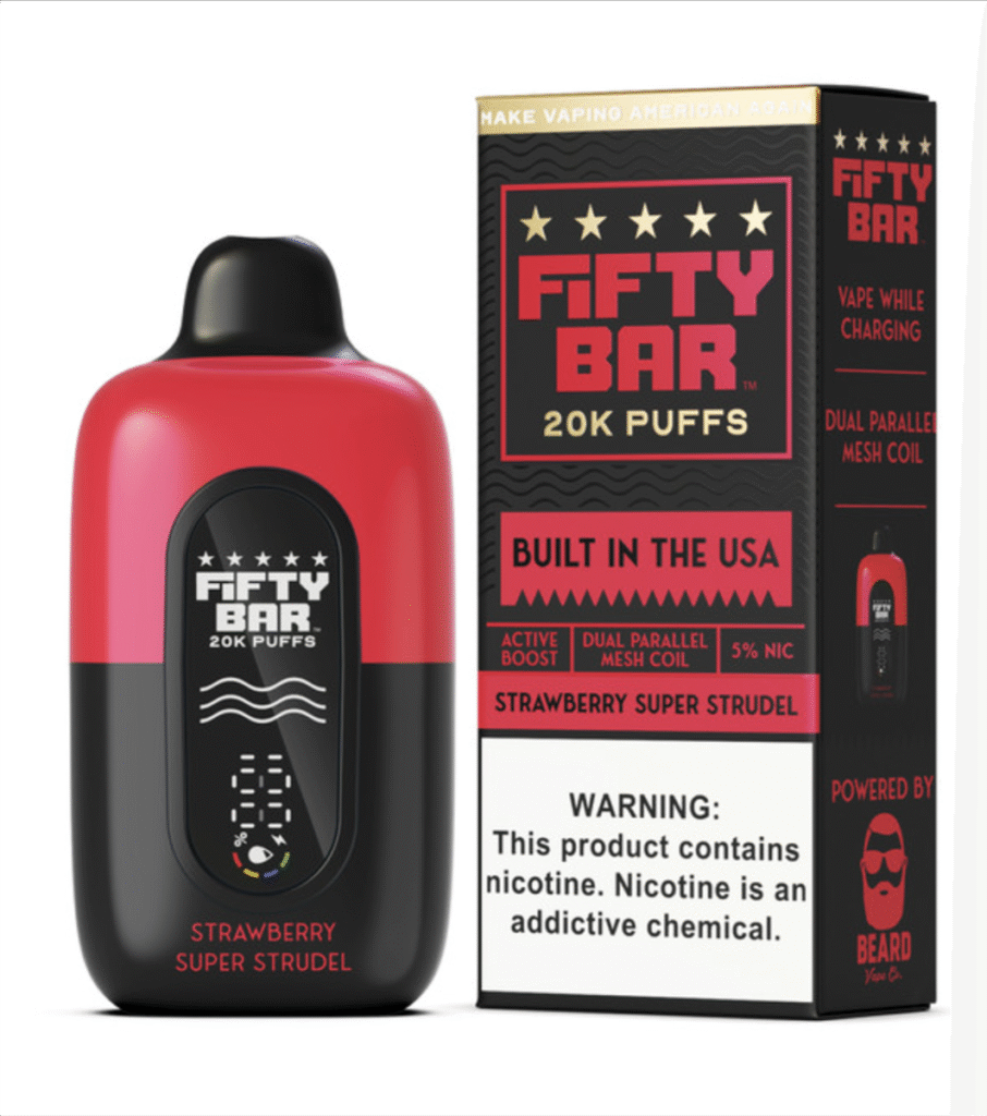 Fifty Bar V2 Strawberry Super Strudel Disposable 20k Puff is already loaded with a high-quality, USA designed e-liquid, meaning it is especially convenient to use; and not to mention the gustatory experience is notable, as well. It has a combination of a long battery life, large puff, and a delicious taste that will make it a great choice throughout the day and a landmark among the collection of disposable vapes.
