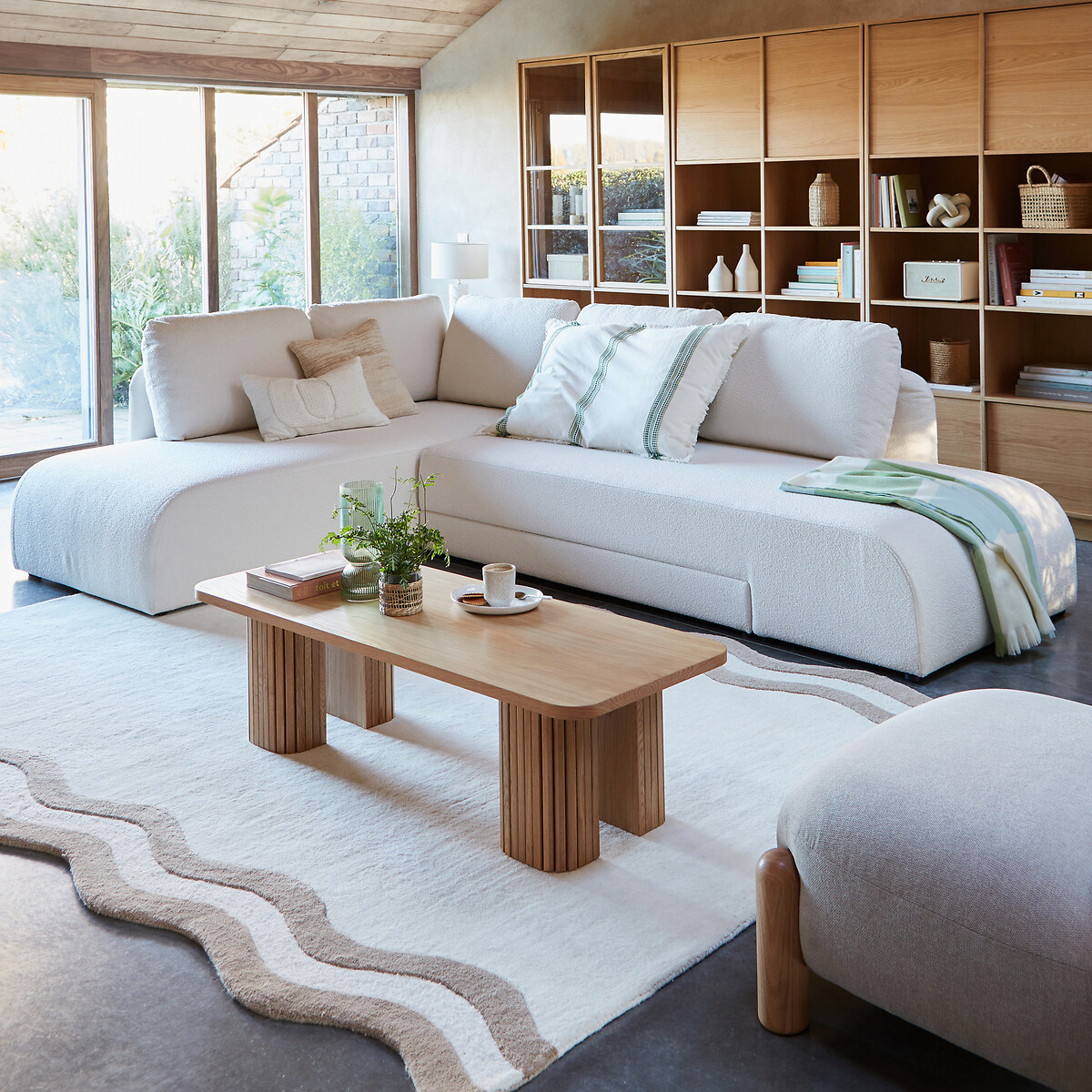 El sofá esquinero derecho HARLEM de 3 plazas, en tela de pana beige y madera clara, está diseñado para quienes buscan espacio y comodidad. Con su perfil en L, se extiende hasta 229 cm de largo y 125 cm de profundidad, creando un asiento esquinero perfecto para relajarse. Su chaise longue derecha se extiende generosamente, mientras que su tapizado de pana aporta calidez y textura a cualquier ambiente. Con una estructura de eucalipto macizo y una base de madera maciza de caucho, la estructura promete durabilidad y un atractivo natural atemporal.