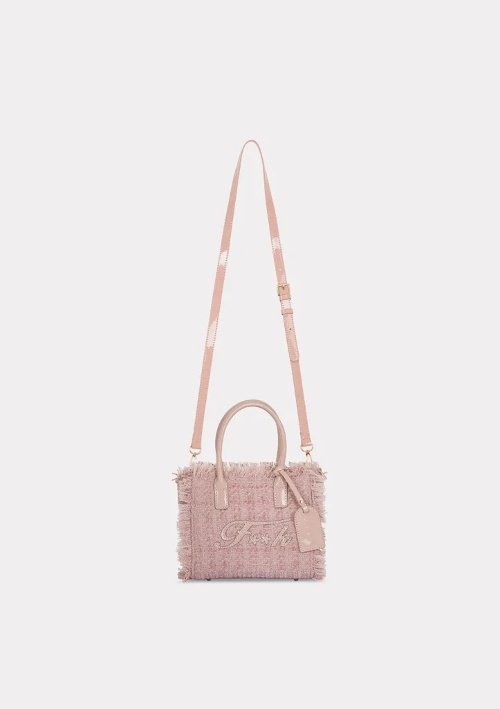 The Bag Bag Woman FK Light Pink Ww0075-LP is a high-end accessory that has a touch of elegance and convenience in its everyday life. It is constructed of a quality tweed, and has a zip fastening and an inner pocket to put valuables in. It has a rigid handle and a removable adjustable shoulder strap that provides various carrying options with style and functionality.