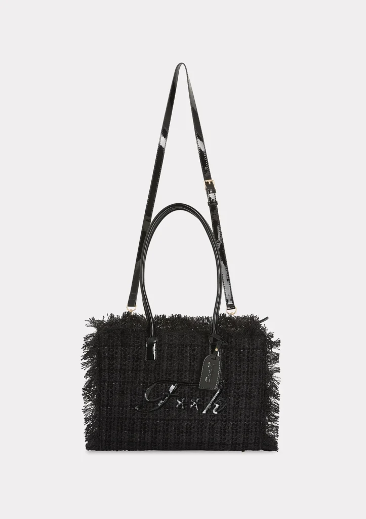 The Tote Bag Woman FK Nera WW0070-BK** combines elegance and utility, perfect for a modern lifestyle. Crafted from tweed, it features a zip closure, internal pocket, and rigid handles for practical carrying. A removable adjustable shoulder strap adds further versatility, suitable for daily commutes or casual outings.