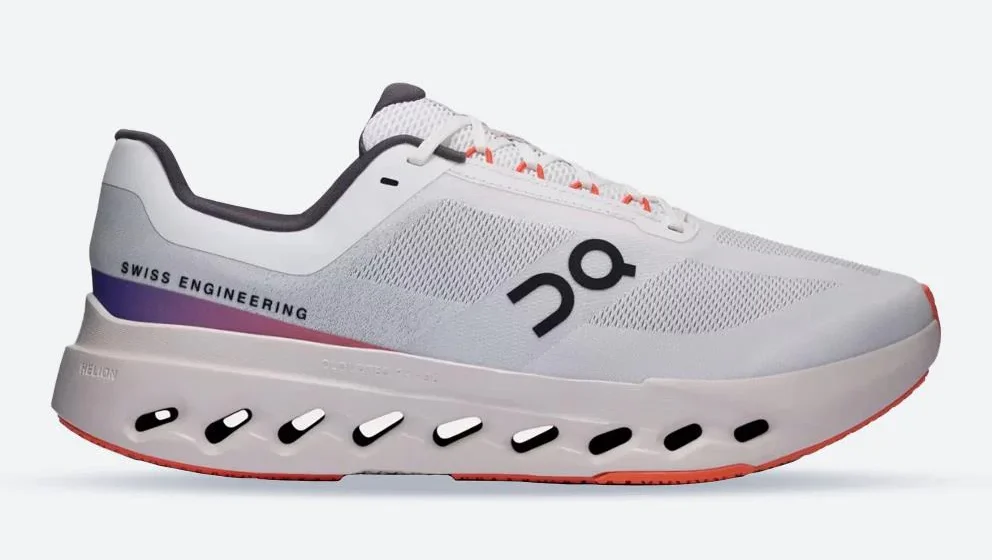 Take your fitness game up a notch with the On Running Cloudsurfer Next Trainers – a new age solution for women who want to train hard and feel comfortable while doing so. These trainers have a loose cut for those who require a lot of room to move whilst still wanting adequate support. The superior cushioning system gives the feeling of walking on the clouds especially when exercising at the gym. Their white and flame designs give your fitness wear a fashionable touch making you stand out in the gym. Modern materials make shoes light and allow air to get through to your feet so that you can keep sweating even when you are exercising. These trainers have a long-wearing sole that gives a superb grip; they are as functional as they are fashionable. As shoes for running, training, or just day wear, they add functionality to your shoe wardrobe. Revolutionise your fitness regime with shoes that assist you in achieving your potential and looking your best while at it.