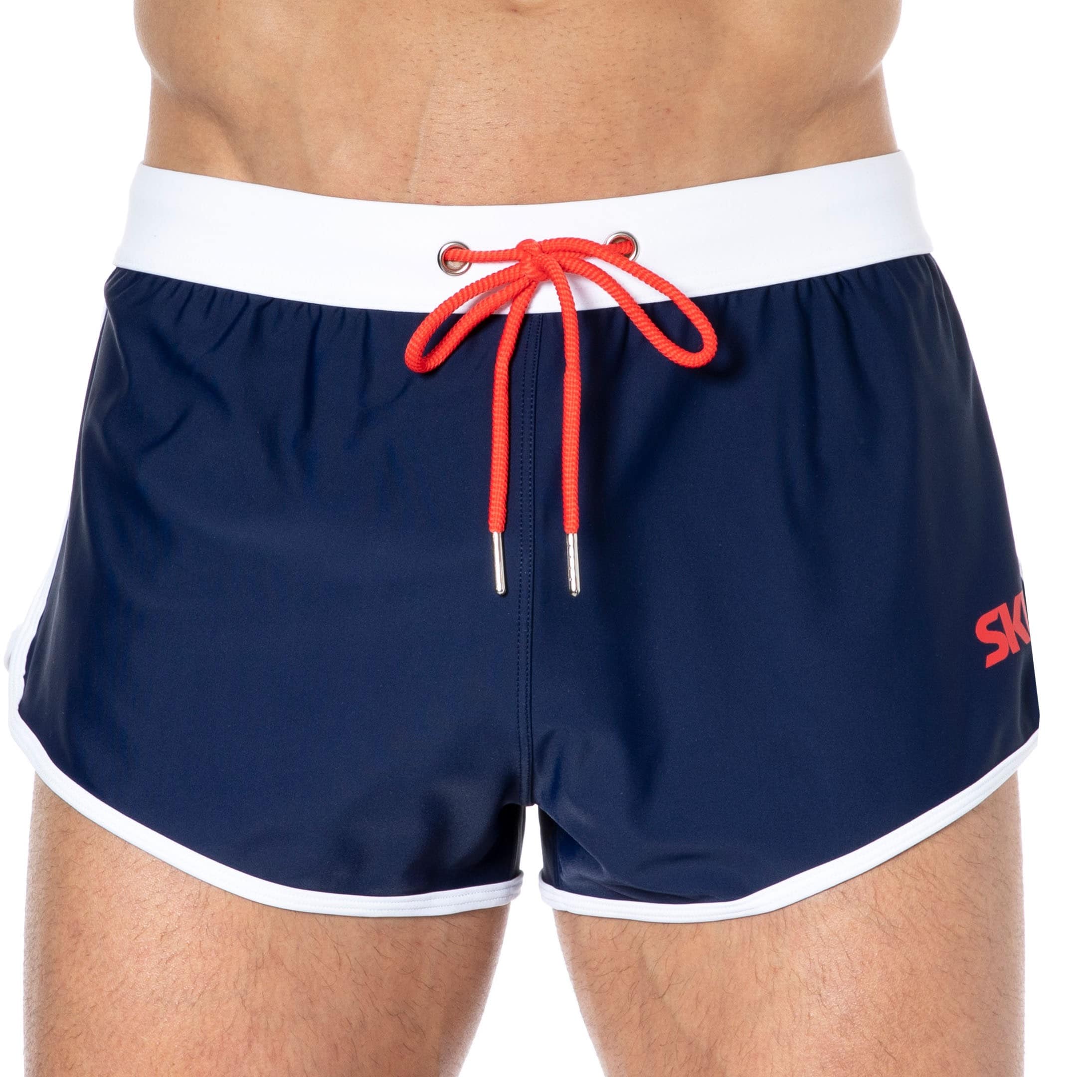 Plongez dans l’eau avec style grâce à ce short de bain bleu marine de SKU. Fabriqué en microfibre de haute qualité à séchage rapide, ce short de bain est parfait pour une journée à la plage ou au bord de la piscine. Les bordures de couleur contrastante ajoutent à son look élégant et la culotte intérieure en maille fine le rend extrêmement confortable. Vous aimerez la façon dont le logo SKU apparaît sur la cuisse gauche, vous donnant une dose supplémentaire de confiance. De plus, la taille élastique avec cordon de serrage vous assure un ajustement parfait qui reste en place, pour que vous puissiez barboter en toute sérénité. Préparez-vous à prendre le soleil et à attirer l’attention de tout le monde avec ce short de bain indispensable.