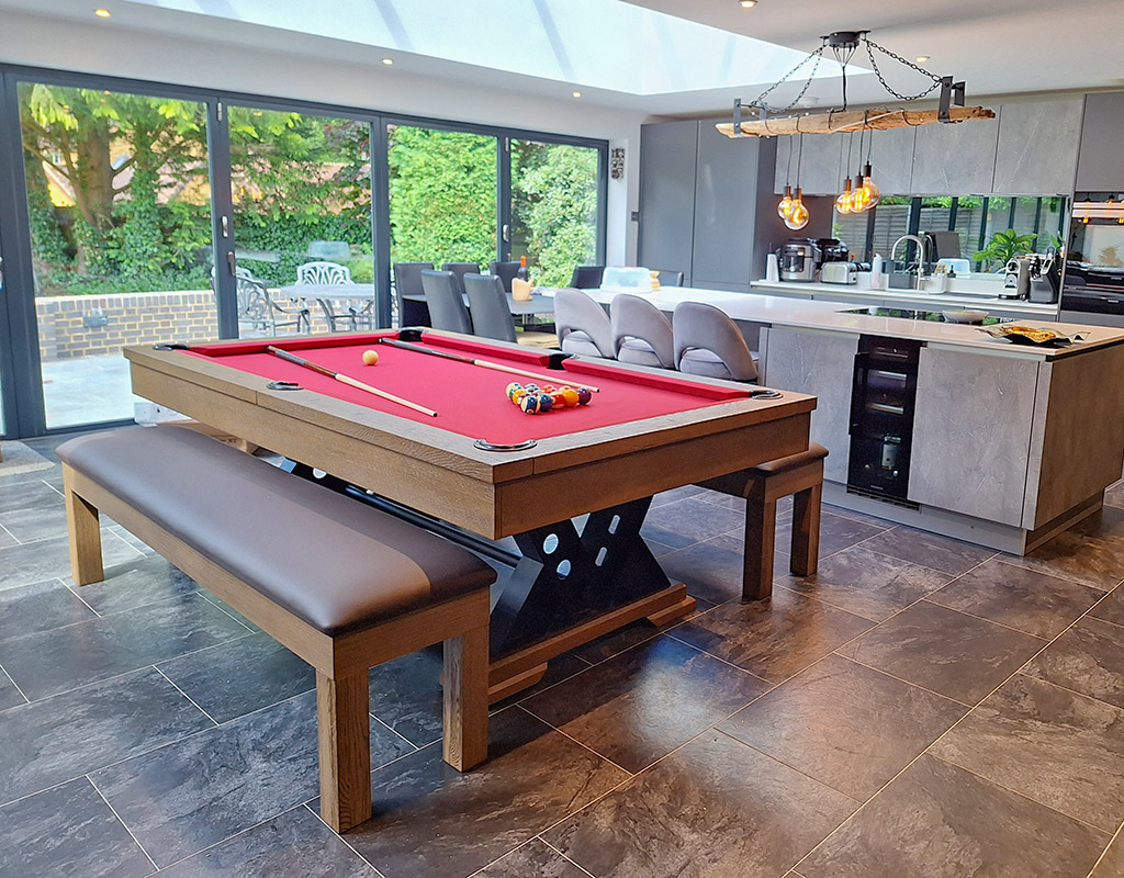 Its design, which it was designed in collaboration with Rasson, guarantees high playability and high-quality craftsmanship. The stable dining tops are firmly fixed and do not move, and the playing surface is covered with beautiful covers in the hidden design. It is made even more attractive by free delivery and installation and an accessory pack worth £250. Its long lasting quality is further supported by the five-year warranty that allows it to serve as a useful and beautiful centrepiece to any home.