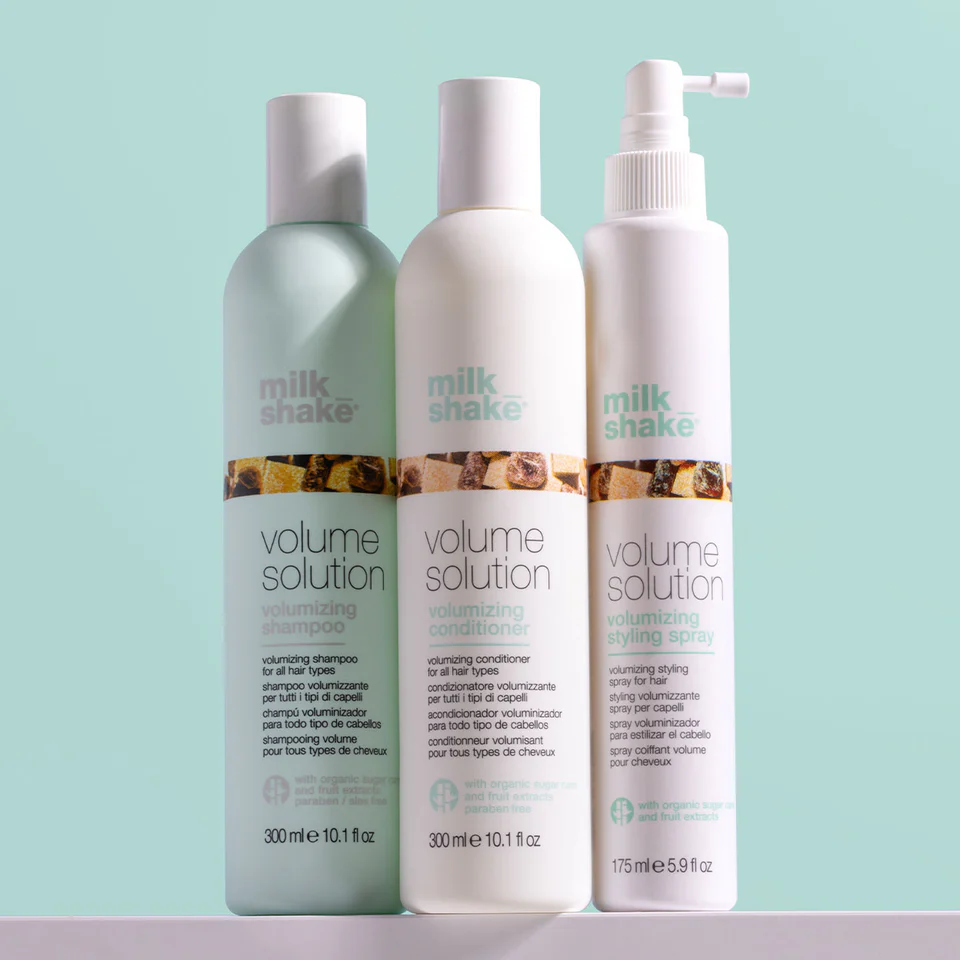 MILK_SHAKE VOLUMIZING VALUE SET is a pack of paraben-free shampoo, paraben-free volumizing conditioner and lightweight styling spray. The three in the collection are made with fine, flat, or normal hair, lifting the hair, providing mass, and keeping it soft without any residue. The SLES-free shampoo is a gentle cleanser as it cleanses the hair all the way to the end and maintains the volume of the hair. The conditioner enriches and softens hair in a handleable, bouncy feel. What makes the lightweight styling spray a complete system is the fact that it puts the shine and volume back into the hair, leaving it alive and full-bodied.