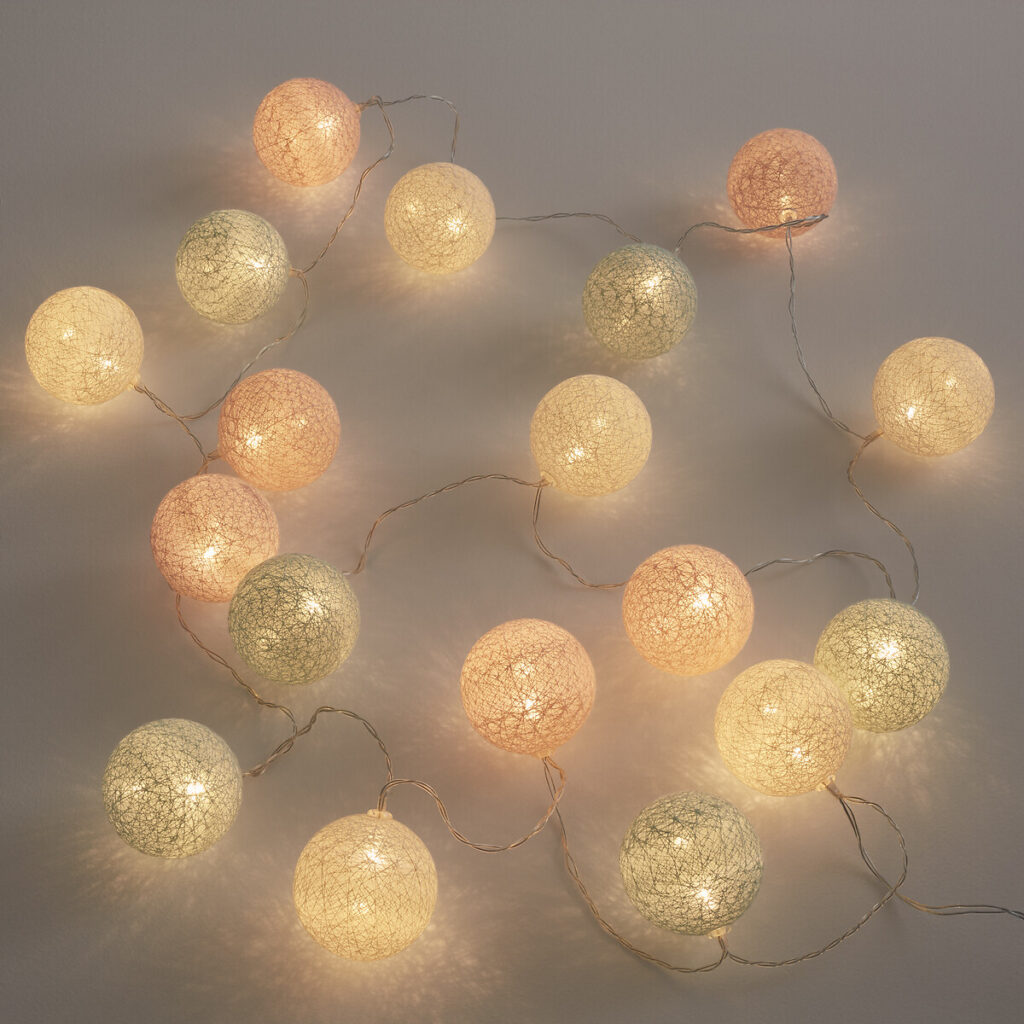 La guirnalda luminosa Fantol, con bolas de colores, combina alegría y armonía cromática en una pieza encantadora. Diseñada con bolas de algodón en tonos pastel que difunden la luz suavemente, aporta calidez y alegría a cualquier espacio. Con 2,85 metros de largo y bolas de 6 cm de diámetro, la guirnalda Fantol es perfecta para dormitorios, cafeterías o cualquier rincón acogedor que necesite un toque de alegría. Sus sutiles tonalidades y su brillo delicado crean una atmósfera relajante a la vez que vibrante, convirtiéndola en una de las favoritas para ambientes artísticos y juveniles.