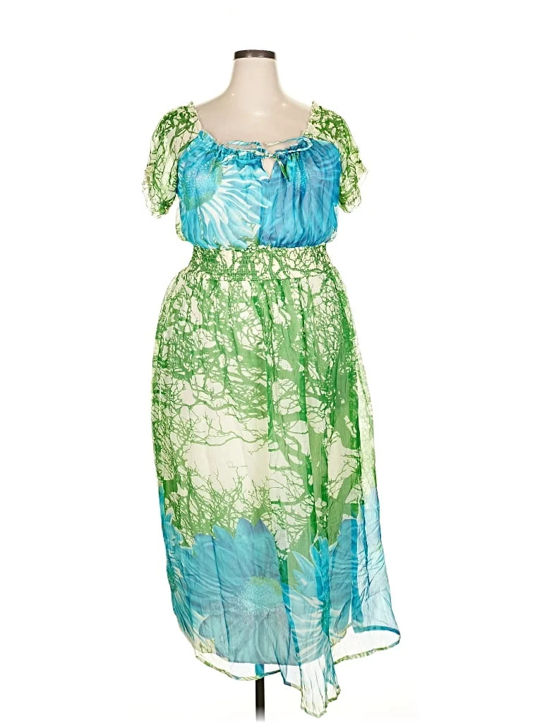 Jessica Taylor Cocktail Dress is a blend of lightweight construction made of 100% polyester and in a lively tropical green print. The square neckline in a short sleeve is casual and the length of the midi-calf adds to the sophistication of modern fashion. Wear is minimal but a keen eye can make it last and remain popular in the case of trendy events. Perfect in case of people who love bright prints and vivid colors.