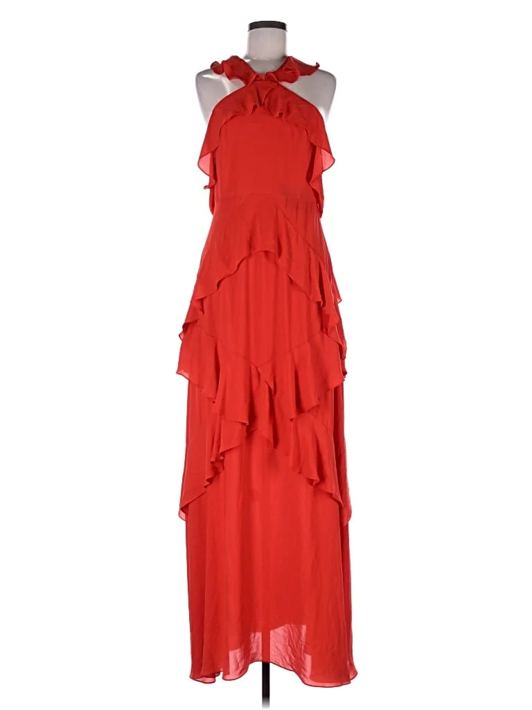 Bcbgmaxazria Cocktail Dress provides a bold red color with a sleeveless halter neck with ruffles. The midi-calf is a stylish figure cut, which suits a night event or formal occasions. The information about the materials is not available, but its building makes it durable and elegant. These items are meant to be worn by those who are not afraid of fashion, and they are designed to be comfortable.