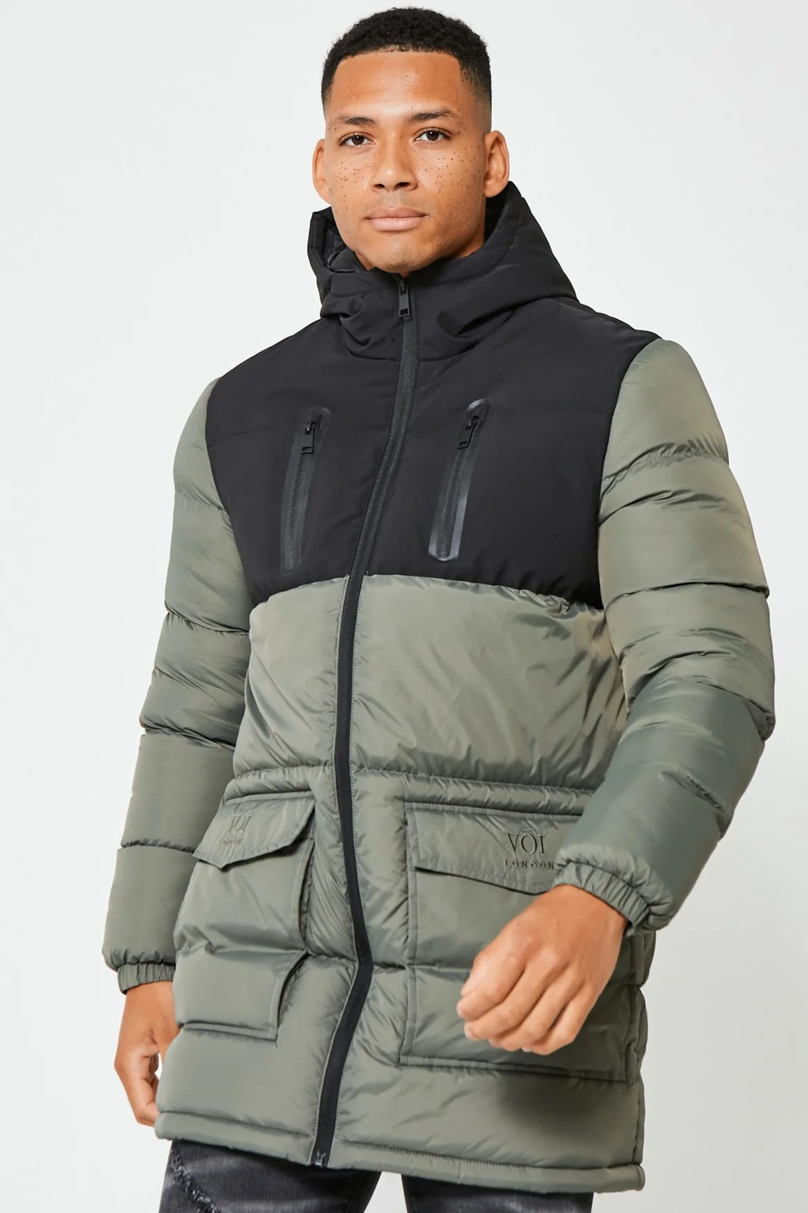 The Newcastle Puffer Coat features a captivating multi-colored design, predominantly in earthy Khaki and bold Black shades. This combination exudes urban sophistication, ensuring you stand out effortlessly in the crowd. It’s perfect for both everyday wear and special occasions.