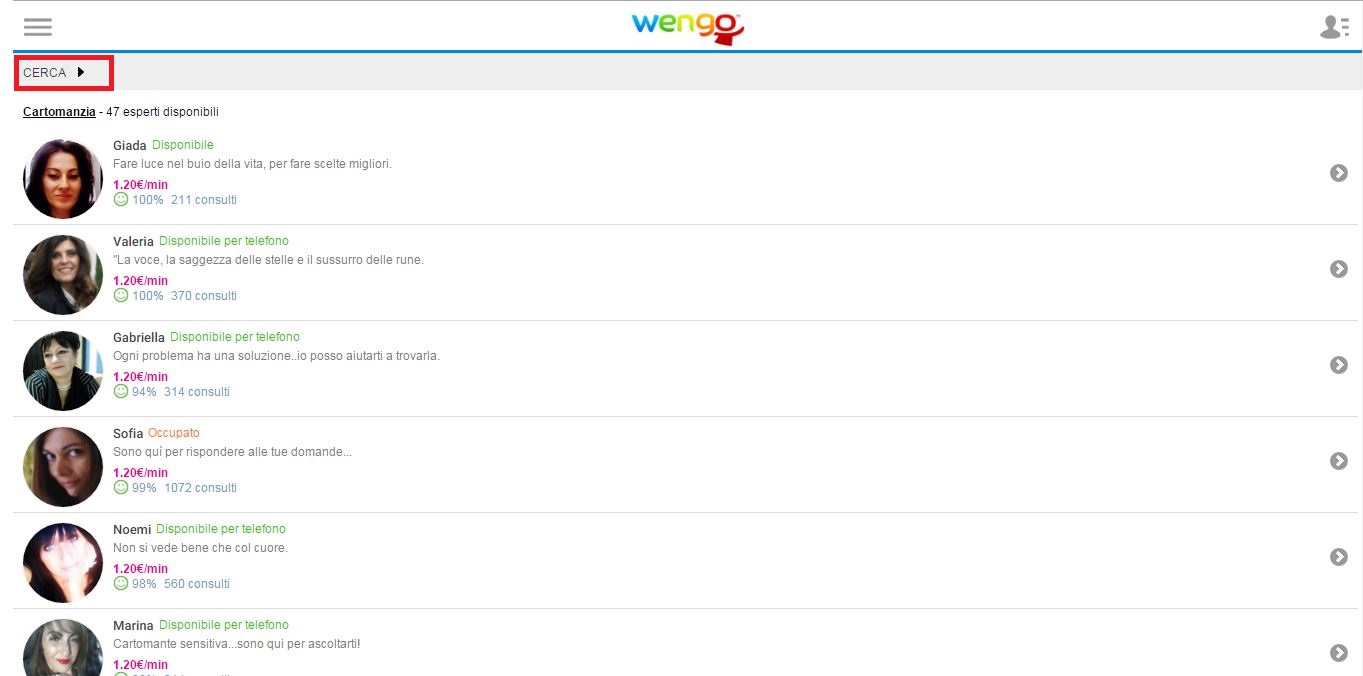 - Competenze diverse: Wengo vanta una gamma diversificata di esperti provenienti da vari settori, come la legge, il benessere, la psicologia, l’economia e altri ancora. Questa diversità garantisce che, qualunque sia la vostra domanda, troverete probabilmente un esperto ben attrezzato per risolverla.