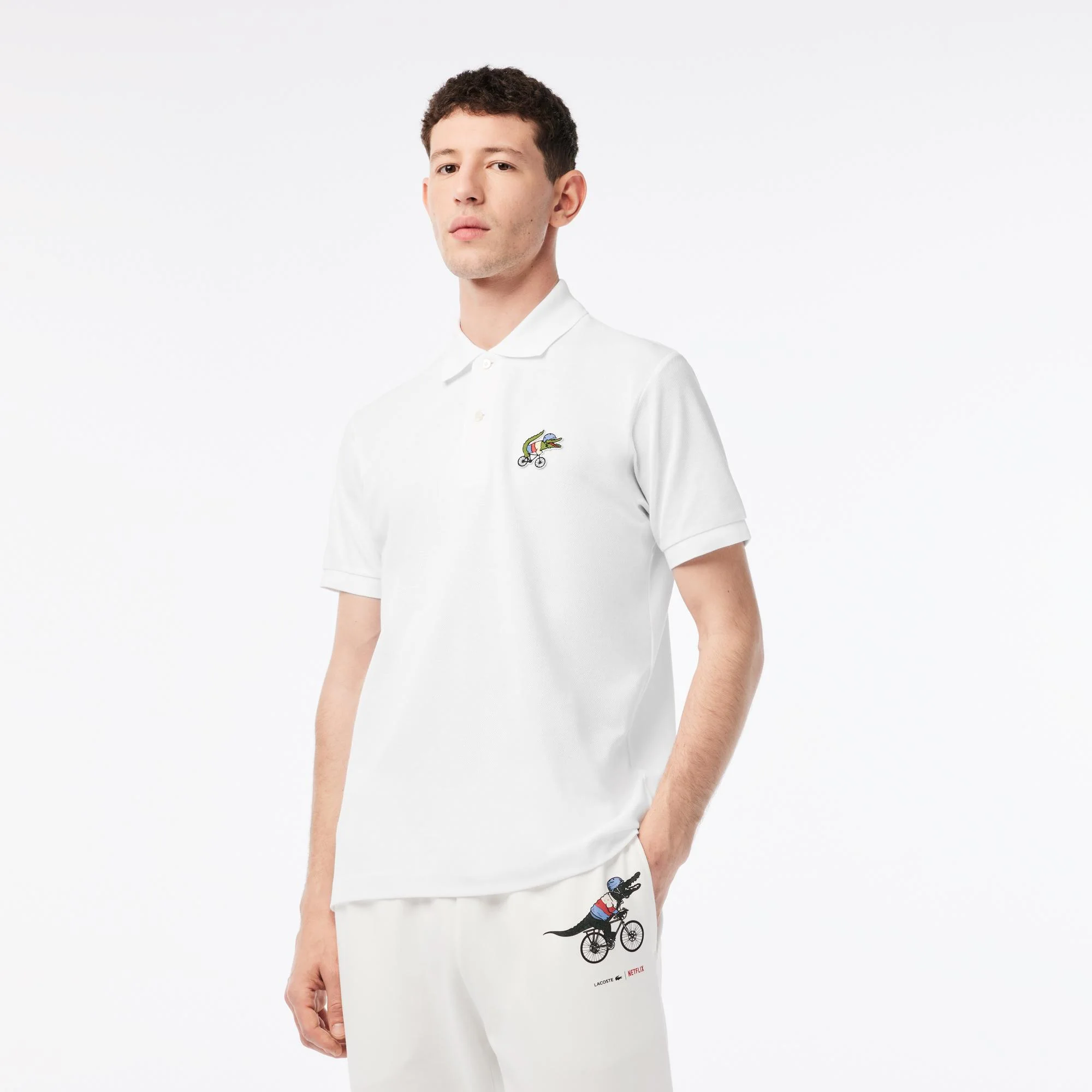 Miłośnicy klasycznego stylu i ekologicznej mody mają teraz powód do świętowania dzięki najnowszej współpracy Lacoste i Netflix. Ta współpraca charakteryzuje się ponadczasowym i wygodnym krojem z całą elegancją i autentycznością, z której znana jest marka Lacoste. Prążkowany kołnierzyk i mankiety dodają wyrafinowanego wykończenia, a grawerowane guziki z masy perłowej dodają elegancji. Kultowe logo krokodyla na piersi jest symbolem autentyczności i dbałości o szczegóły. Co najlepsze, ta koszulka polo jest wykonana z bawełny organicznej, co oznacza, że jest wolna od szkodliwych chemikaliów i GMO, dzięki czemu jest nie tylko stylowa, ale także ekologiczna.